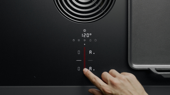Subtly integrated into the cooktop, the controls respond precisely to touch and are clear and intuitive to use thanks to the tricolour display.