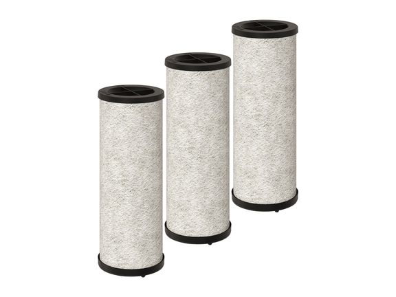 • Release the activated charcoal cartridges by turning them to the left. Once released, carefully take the activated charcoal cartridges out.