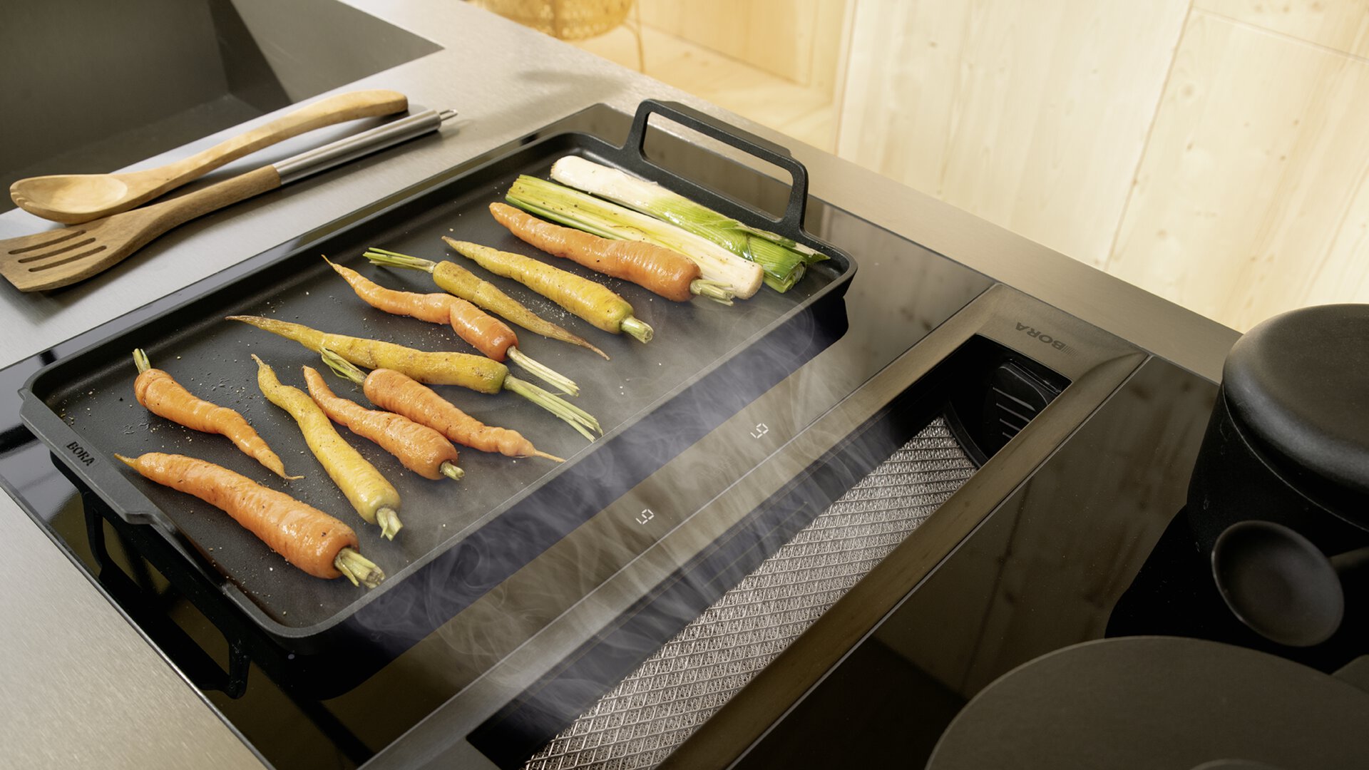 Utilice nuestros accesorios de cocina BORA como versátiles aliados a la hora de cocinar, servir y sobre la mesa del comedor. Estética y funcionalidad combinadas de manera óptima.
