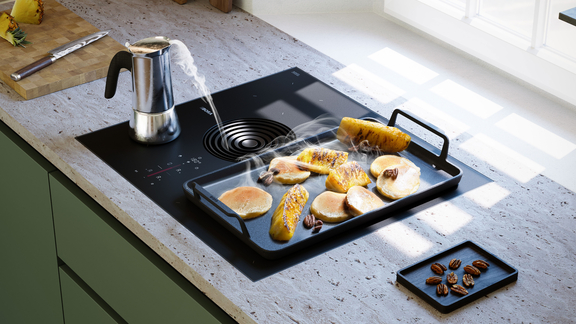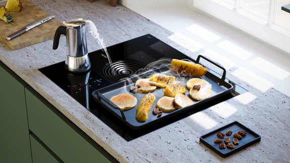 BORA-grillipannun kanssa Fry-toimintoa voi käyttää suoraan keittotasosta. Ruoanvalmistusastia kuumennetaan tarkasti haluttuun lämpötilaan, jota pidetään yllä automaattisesti – tämä takaa aina täydellisen kypsennystuloksen.